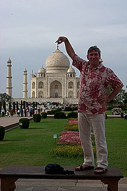 These two cows are part of the lawn mowing team. See the lawn mower behind them? When I first arrived at Taj Mahal there were outside the gates and I didn't realize what they were about. Later as I was leaving I saw them in action!
